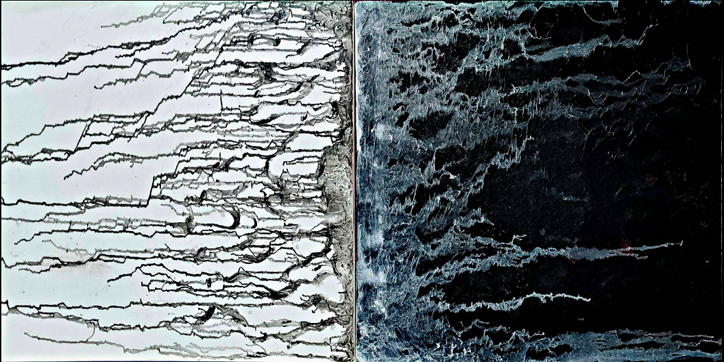 Rather than showing a progression of stages, the work was reduced to one decisive state: the instant where order and chaos bleed into each other.